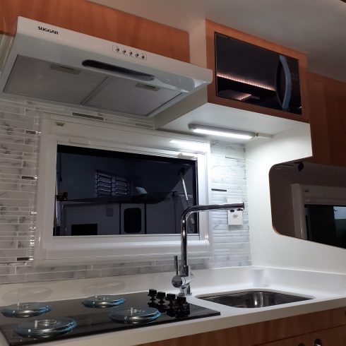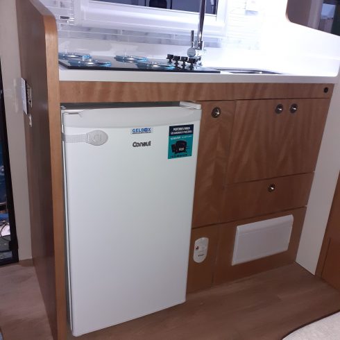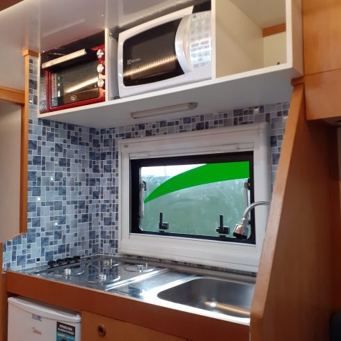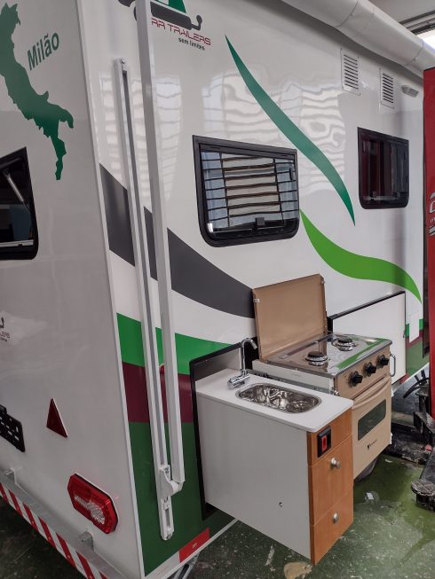 O modelo Milão conta com cama de casal confeccionada em espuma de 10cm de altura e densidade 33, medindo 1,33m x 1,99m. O conforto do lar em sua casa sobre rodas.